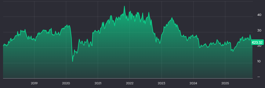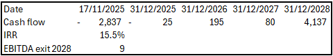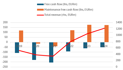 Another perspective is to take into account the yield on this investment from the cash flow it generates. The Enterprise Value is around EUR 2.8bn today, and free cash flow ex growth capex (maintenance free cash flow) in 2026 should be around EUR 280m. That is a 10% yield.