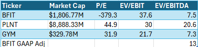 Now, the financials are difficult to compare. As I mentioned above, Basic Fit is reinvesting heavily so EV/EBIT is not a great measure unless I normalise all 3 gyms to compare them. Then, EV/EBITDA which would be better (and can be used to compare BFIT and GYM) is useless to compare it with Planet Fitness because they report under US GAAP and Basic Fit under IFRS. Leases are treated differently and makes it incomparable. If I adjust to remove leases above EBITDA at Basic Fit, I get an EBITDA of EUR 339m. That leads to an EV/EBITDA of 13 times compared to 20.6 times Planet Fitness. Yes, on a like for like basis Basic Fit is dirty cheap compared to Planet Fitness!