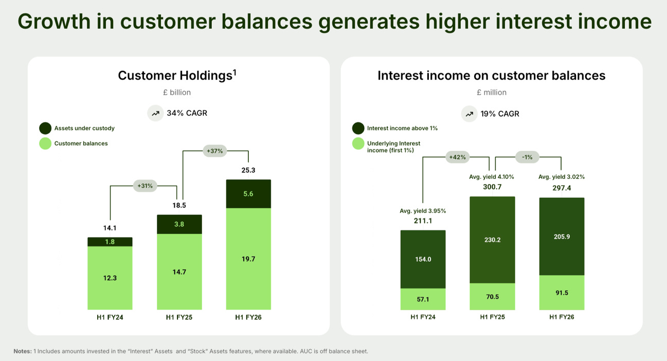 Card revenue grew by 28% in the first half of their full year 2026, slowing down from 38% the prior year. And then, more interestingly, the interest income on customers balances stayed flat, despite the lower interest rates, mainly due to a 37% increase in customers holdings.