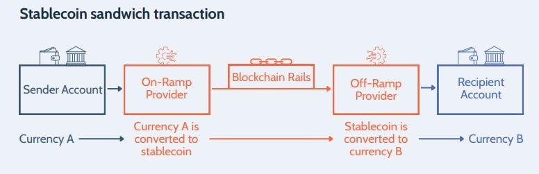 Stablecoin companies claim that they can make international money transfer for as low as 1 cent per transaction. That may be true, but only to a part of the whole process. Let me share the so called “stablecoin sandwhich”: