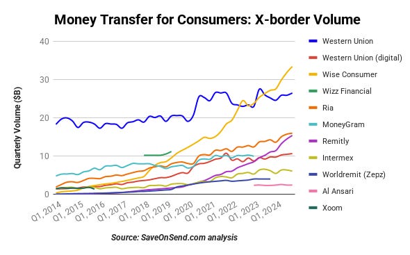 To compare the company’s with one of the fastest-growing competitors, during the past two quarters, Remitly’s take rates have been 2.28% and 2.15%. Still, the company is unable to make money. No wonder that Wise’s cross border volumes have surpassed all competitors, including the legacy business Western Union.